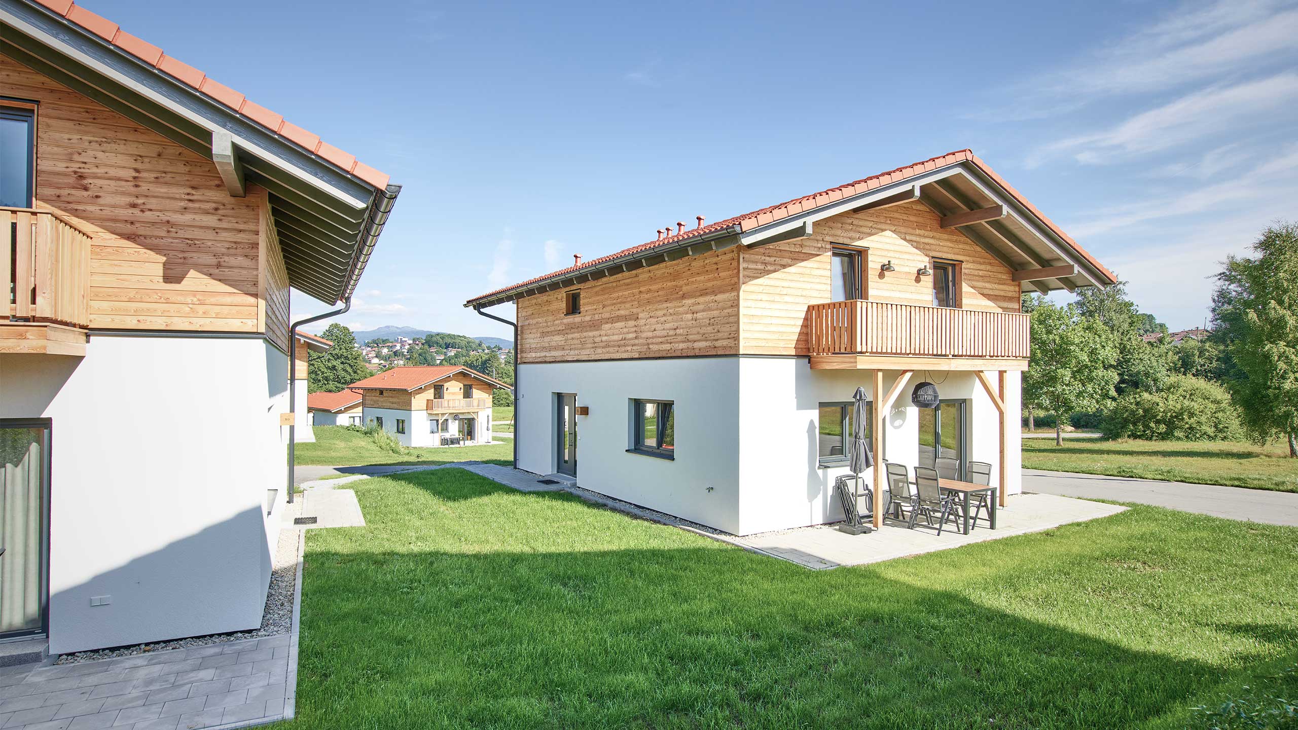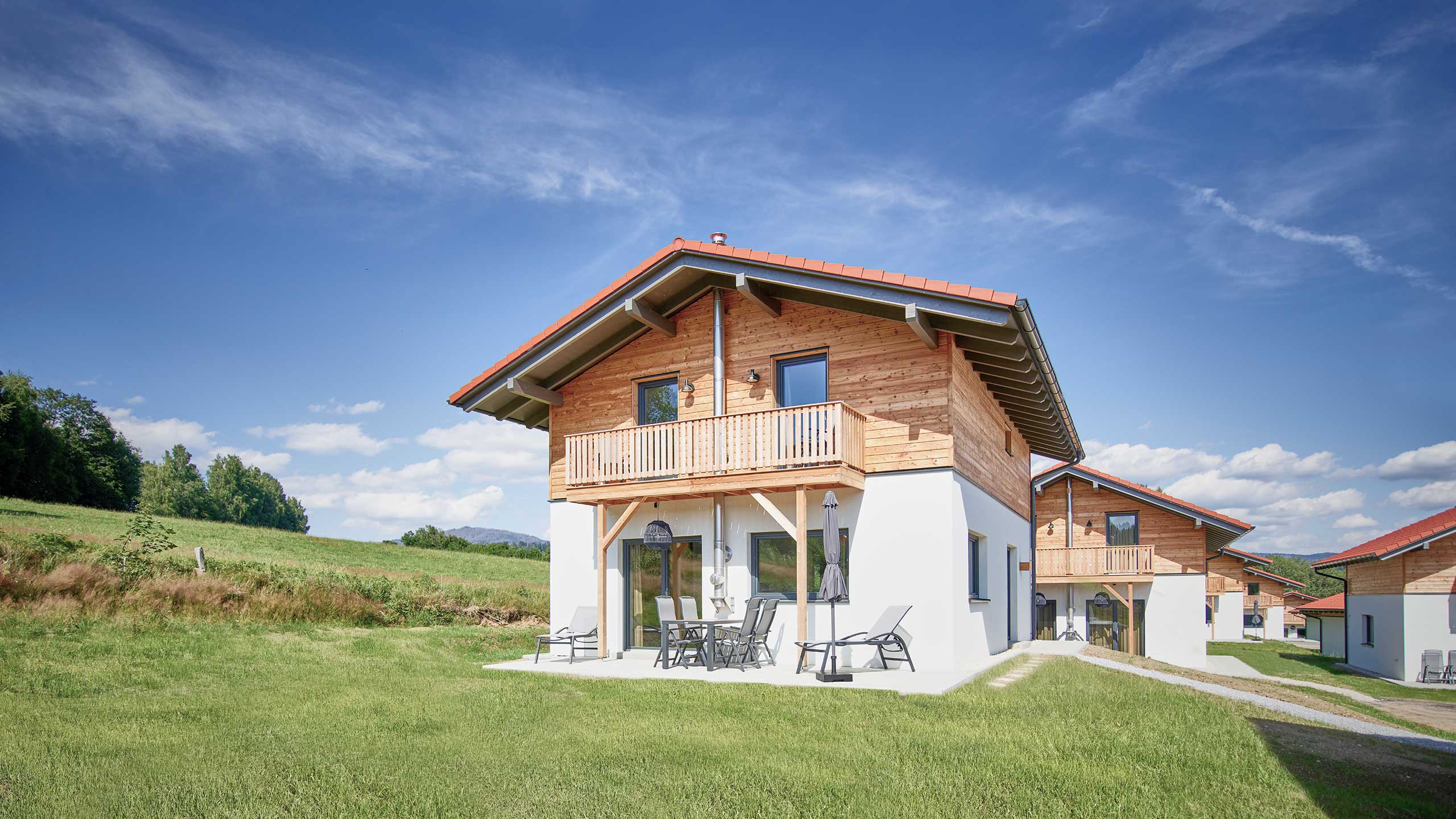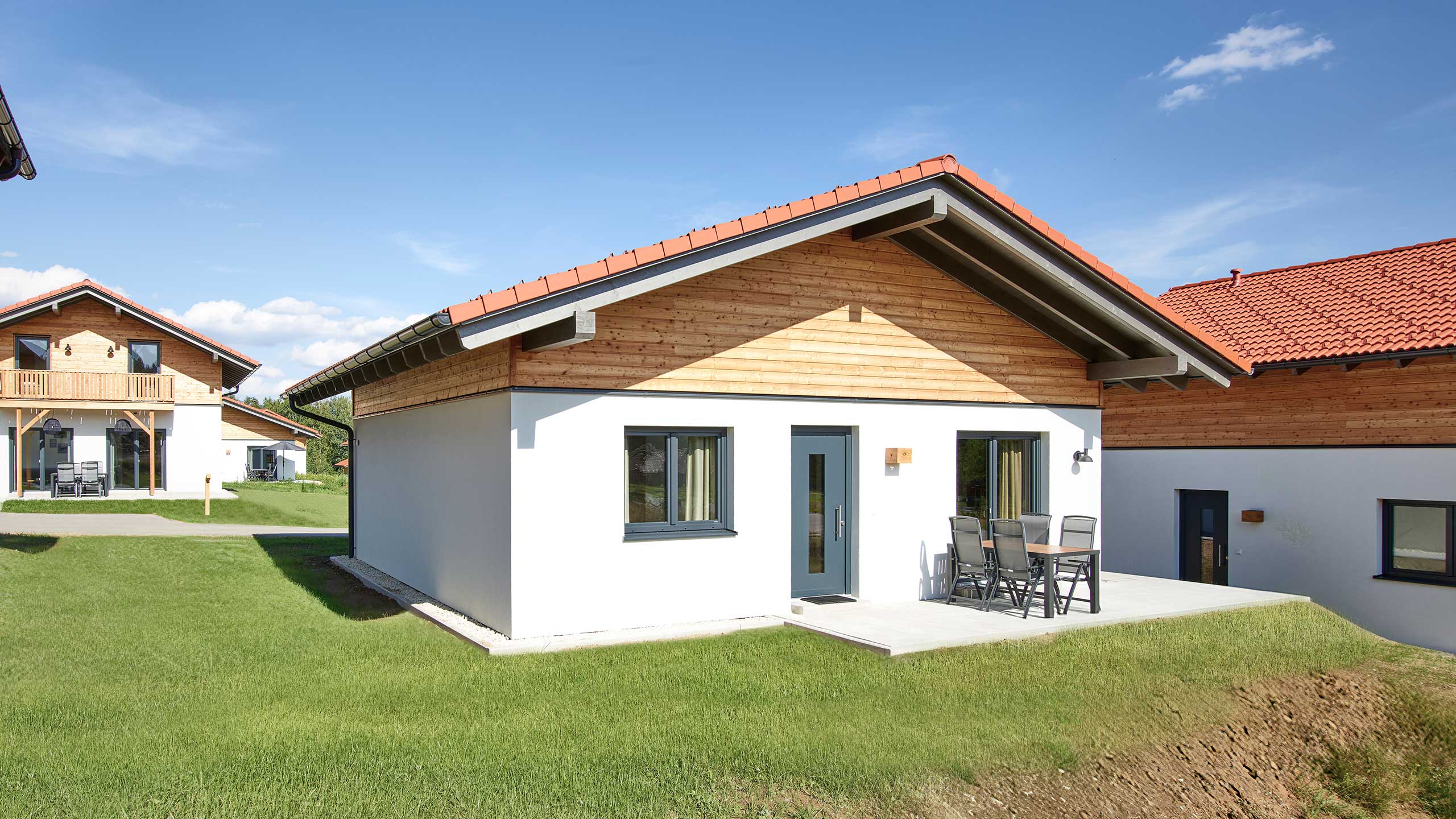 Unsere Chalets werden in fünf Grundtypen erbaut, die Platz für 4, 6, 8, 10 oder 12 Personen bieten. Sie verfügen über einen offenen Wohn-, Koch- und Essbereich für ein geselliges Zusammensein, sowie gemütliche Schlafzimmer und moderne Badezimmer. Während die kleinsten Chalets einstöckig sind, erstrecken sich die größeren Chalets über zwei Etagen.